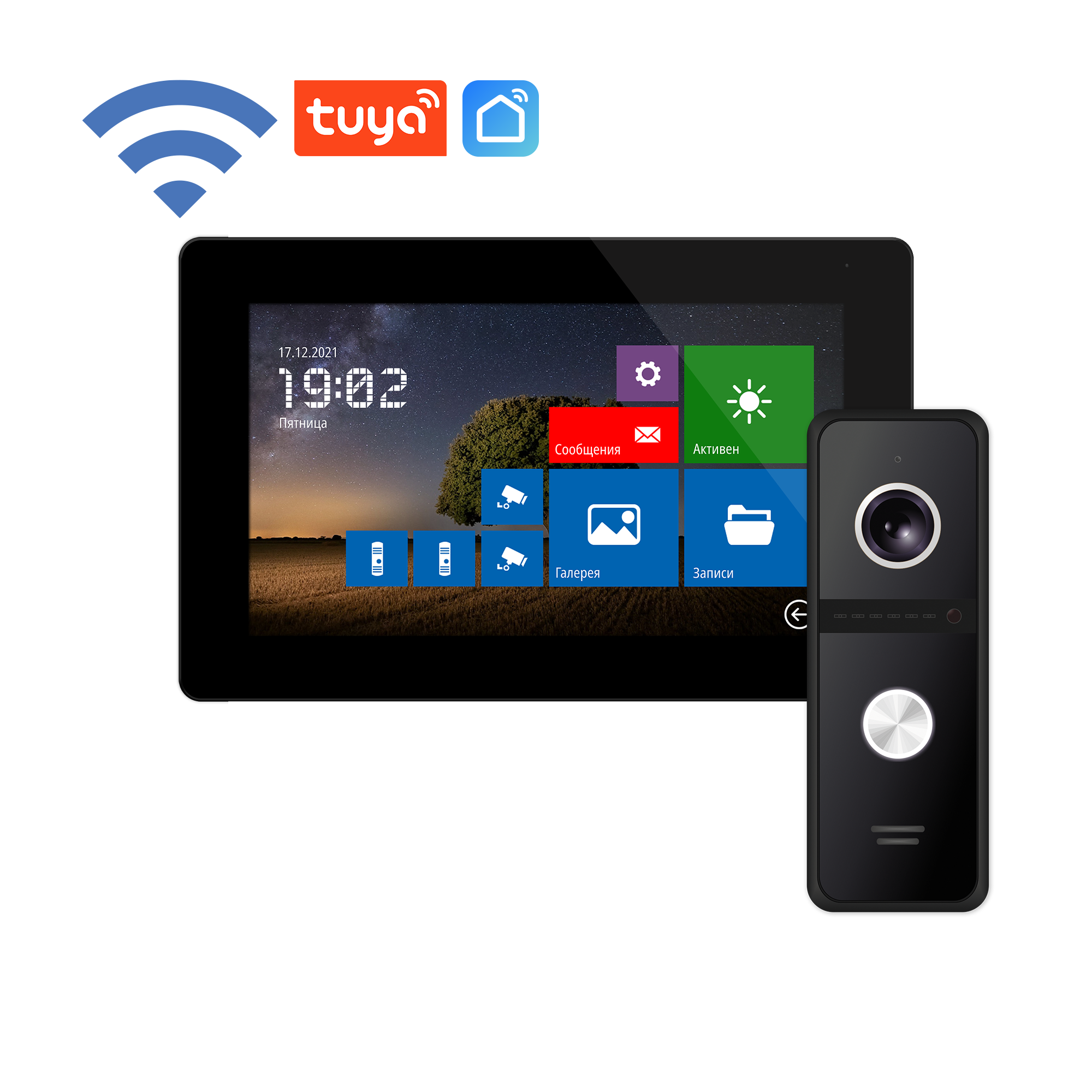 - Совместим с подъездным домофоном через модуль сопряжения